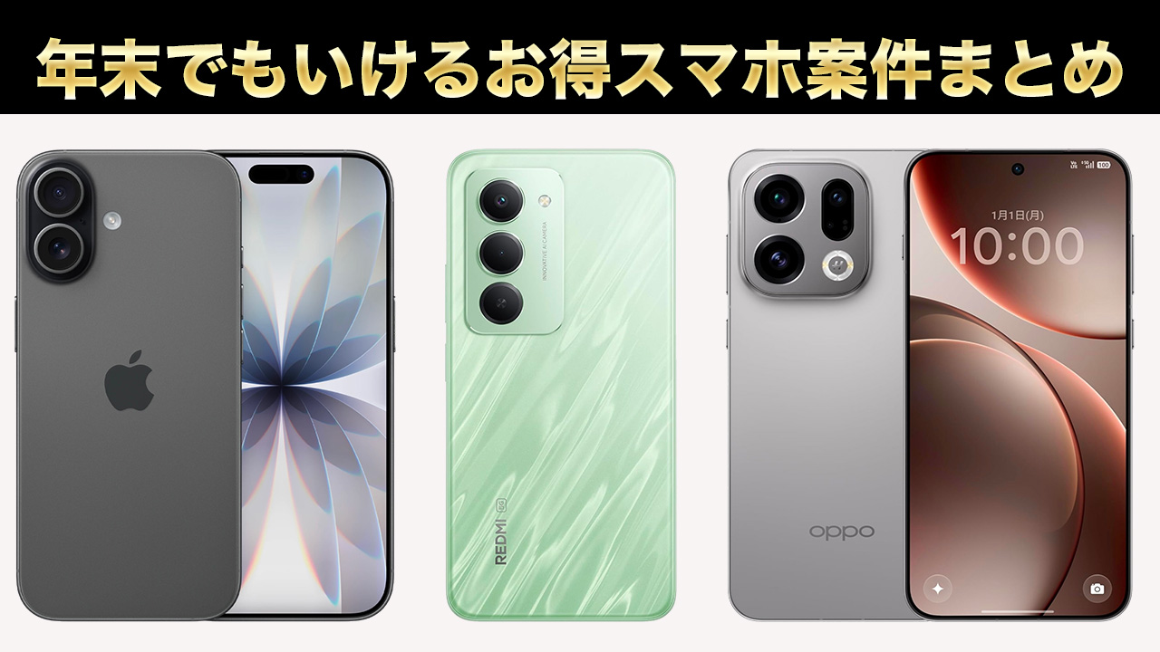 2025年ももう終わり。帰省やら年始の準備やらで忙しい師走ですがスマホ環境も整えたい人は多いはず。今はiPhoneが全キャリアで安く、Androidもハイエンドとエントリーでお買い得機種があります。家族のスマホ手配にも。