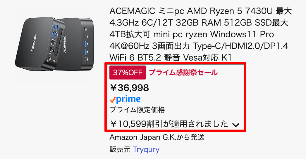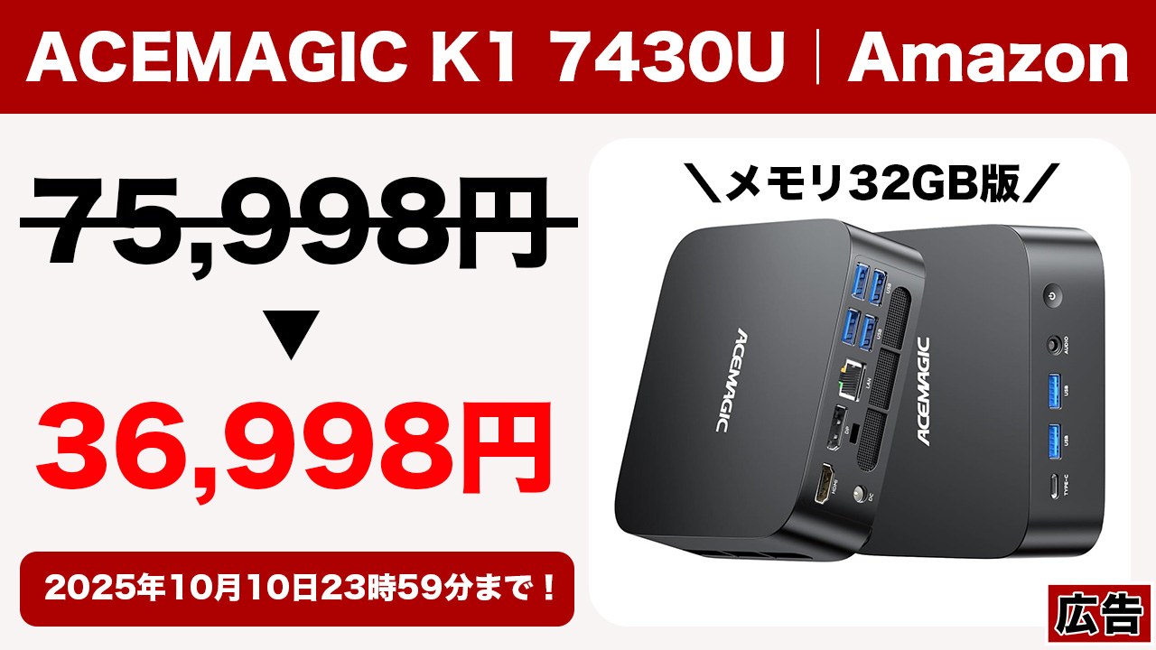 10/10まで!ミニPC「ACEMAGIC K1 7430U」がプライム感謝祭価格より1万円以上安くなるクーポン配布!
