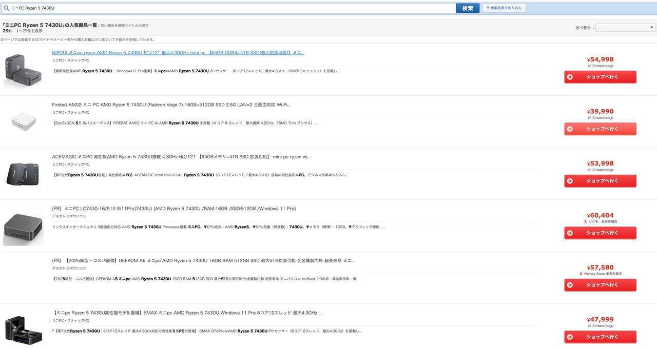 最近はメモリやストレージといったPCパーツの価格がとんでもない勢いで高騰しており、それに伴ってかミニPC全体の価格がグンと上がってきています。