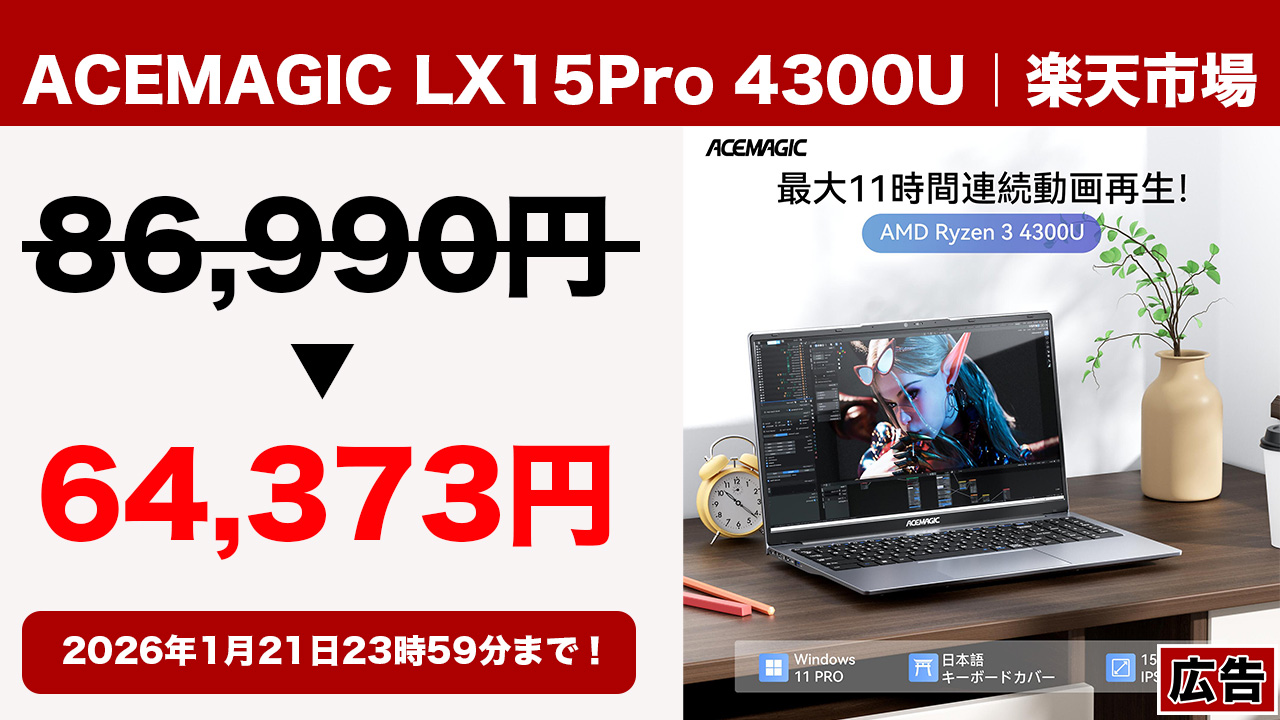 ACEMAGIC LX15Pro 4300Uモデルが64,373円!特徴をチェック!