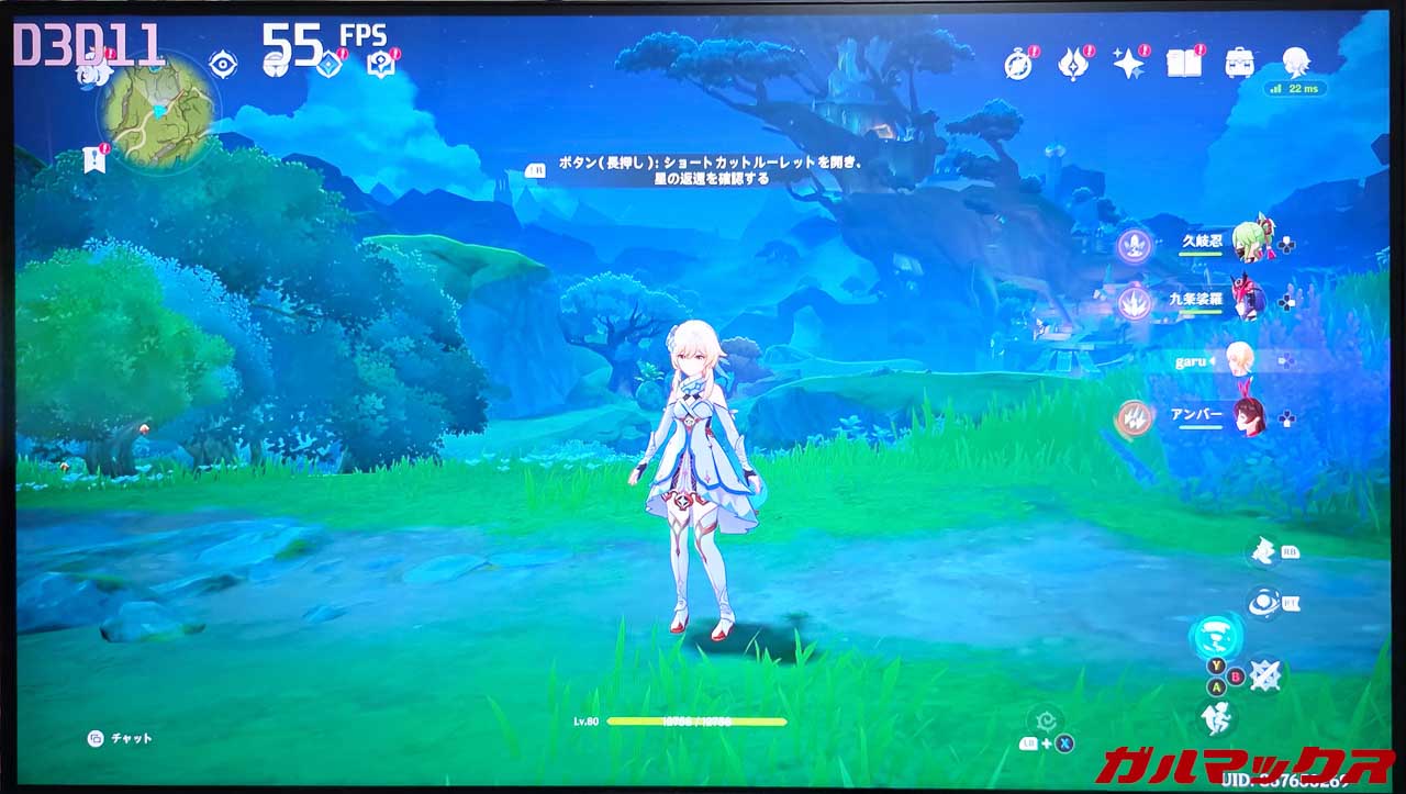 ▼以下は停止状態なので55FPSと表示されているけど実際に遊ぶと画質「低」設定で平均40FPSほど。遊べるっちゃ遊べるけれど快適とまではいかない感じかなー。↓