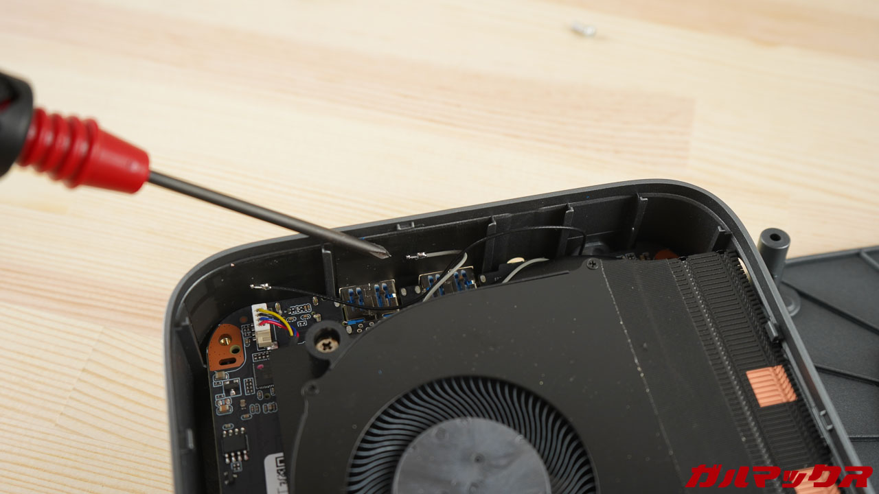 いつもミニPCをバラしているような人間が、「これは切れてしまったらまずいぞ」と思ってしまうくらいなので、簡単にストレージやメモリを変更できるとは言えませんねぇ。