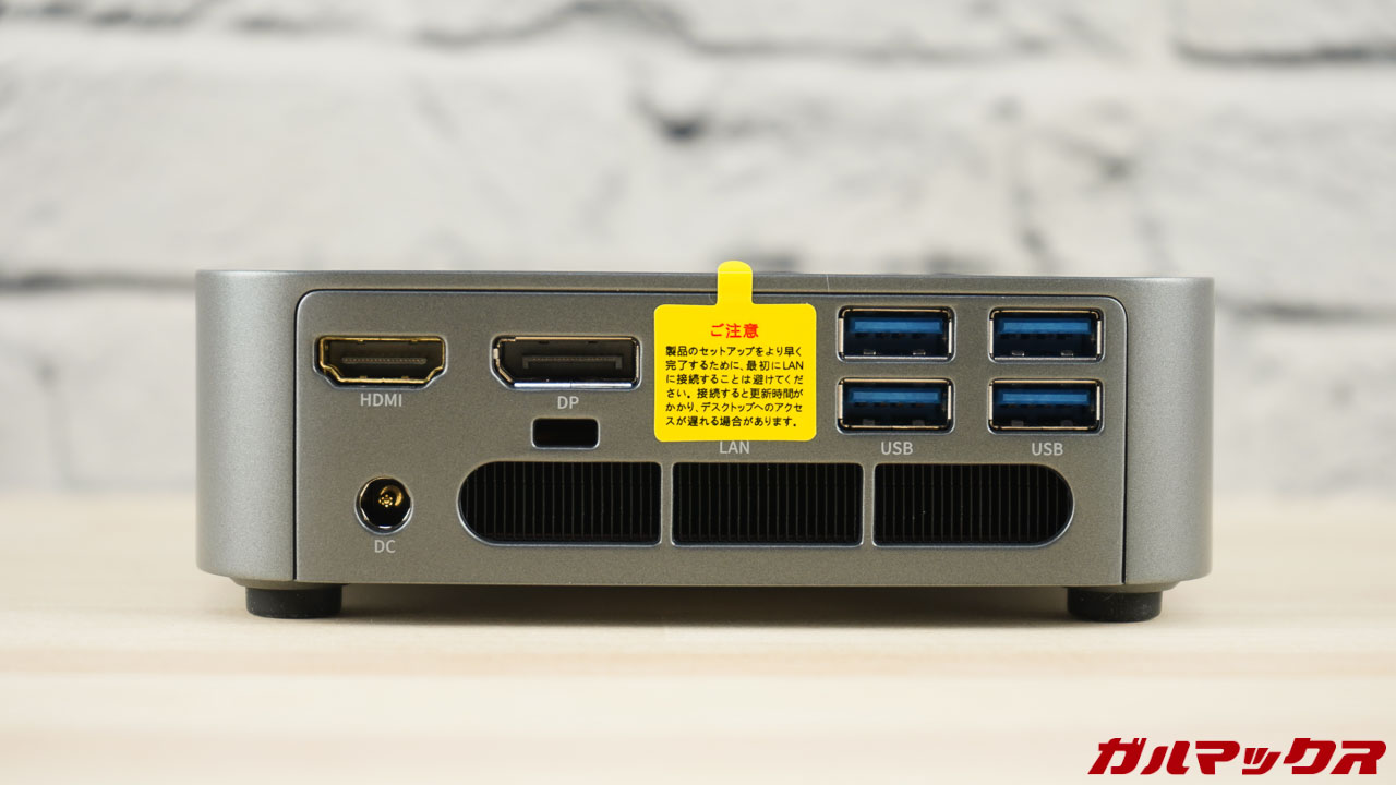 ▼背面にはUSB 3.2(Type‐A)が4つ、RJ45 LANが1つ、外部映像出力はDisplayPort(1.4)が1つにHDMI(2.0)が1つ。↓