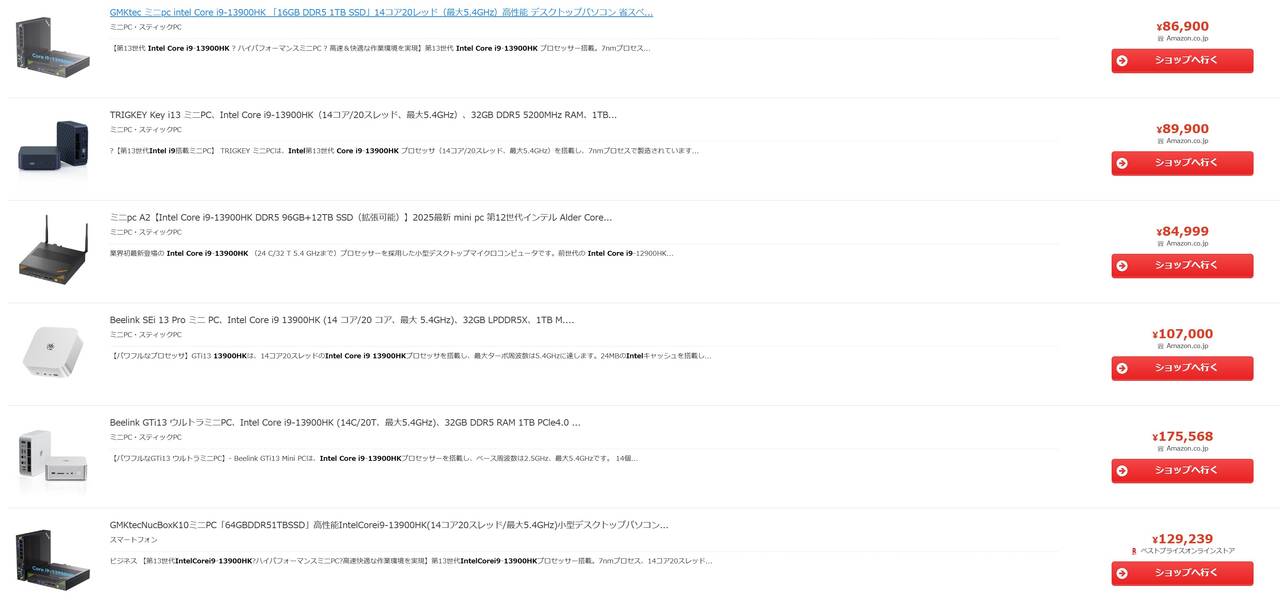 まずは価格から。いつものように価格.comでCore i9 13900HKを搭載するモデルの相場を調べてみました。