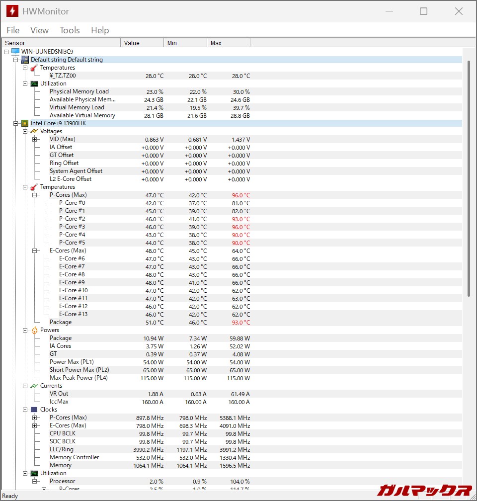 ACEMAGIC M1 13900HKが搭載するCPUはモデル名にも入っているようにIntel Core i9 13900HKを搭載!数世代前のCPUですがハイエンド帯なので今でも余裕あるパワーが魅力です。