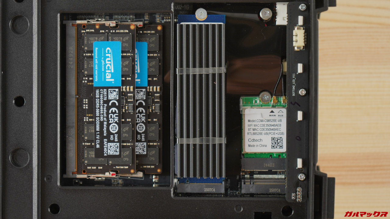 ▼メモリは16GBが2枚刺さっていました。ストレージは1スロット空いているので面倒な換装ではなく増設できるのが嬉しいですね。↓