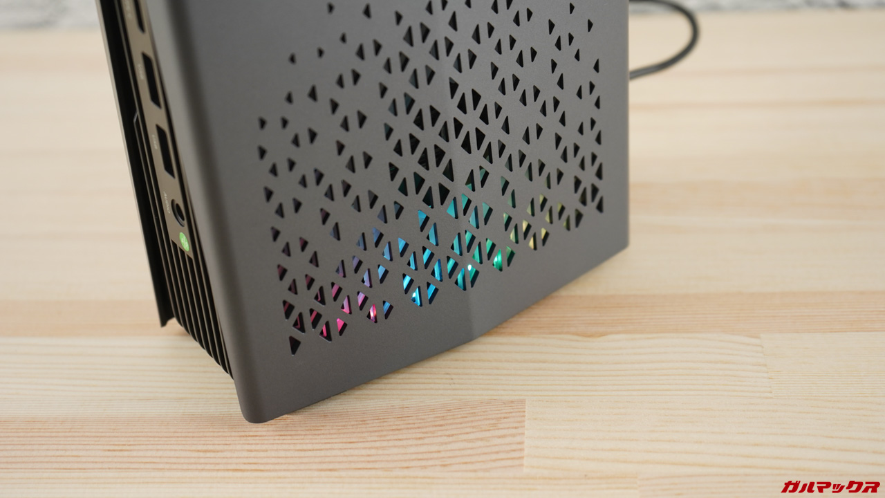 この虹色LEDは制御できるのかな?と思って探してみたんですけど、どうやら光り方は変えられずオフにも出来ないご様子。もし設定項目を知っている方がいたら教えて頂けると嬉しいです。