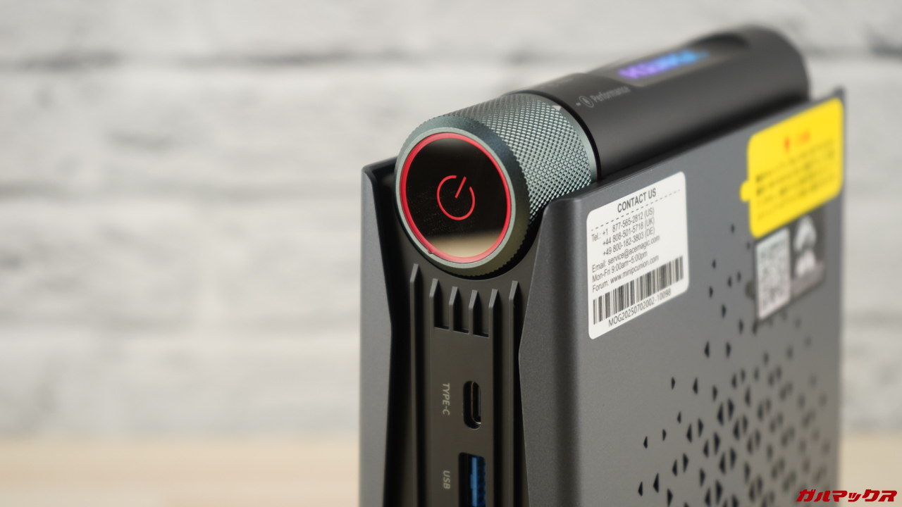 ▼ちょんまげの先端は電源ボタンが埋め込まれてました。回転ダイヤルが備わっていて、左/中央/右の3段階で操作できます。片手での切り替えも問題なし。↓