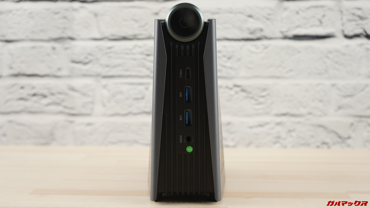 ▼前面にはUSB Type‐A(3.2)が2つ、USB Type‐C(4.0)が1つ、ヘッドホンジャックが備わっています。↓