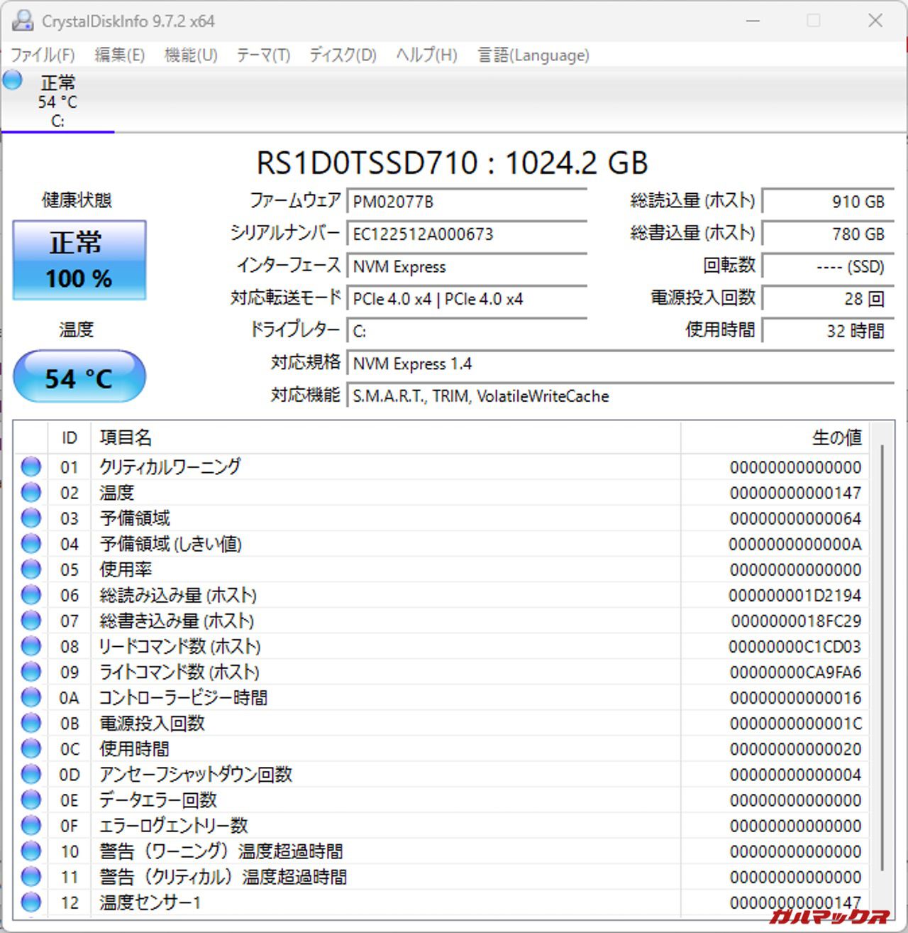 M.2 2280なので安価に手に入るのもGood。1TBもあれば僕は十分なのでこのまま使いますが、沢山データを保存したい人は増設用のSSDを買っておきましょう。
