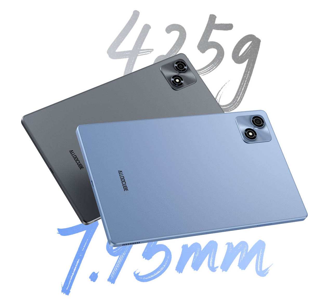 ▼カラーはブルーとグレーの2色。重量は425gで、厚さは7.95mmです。↓