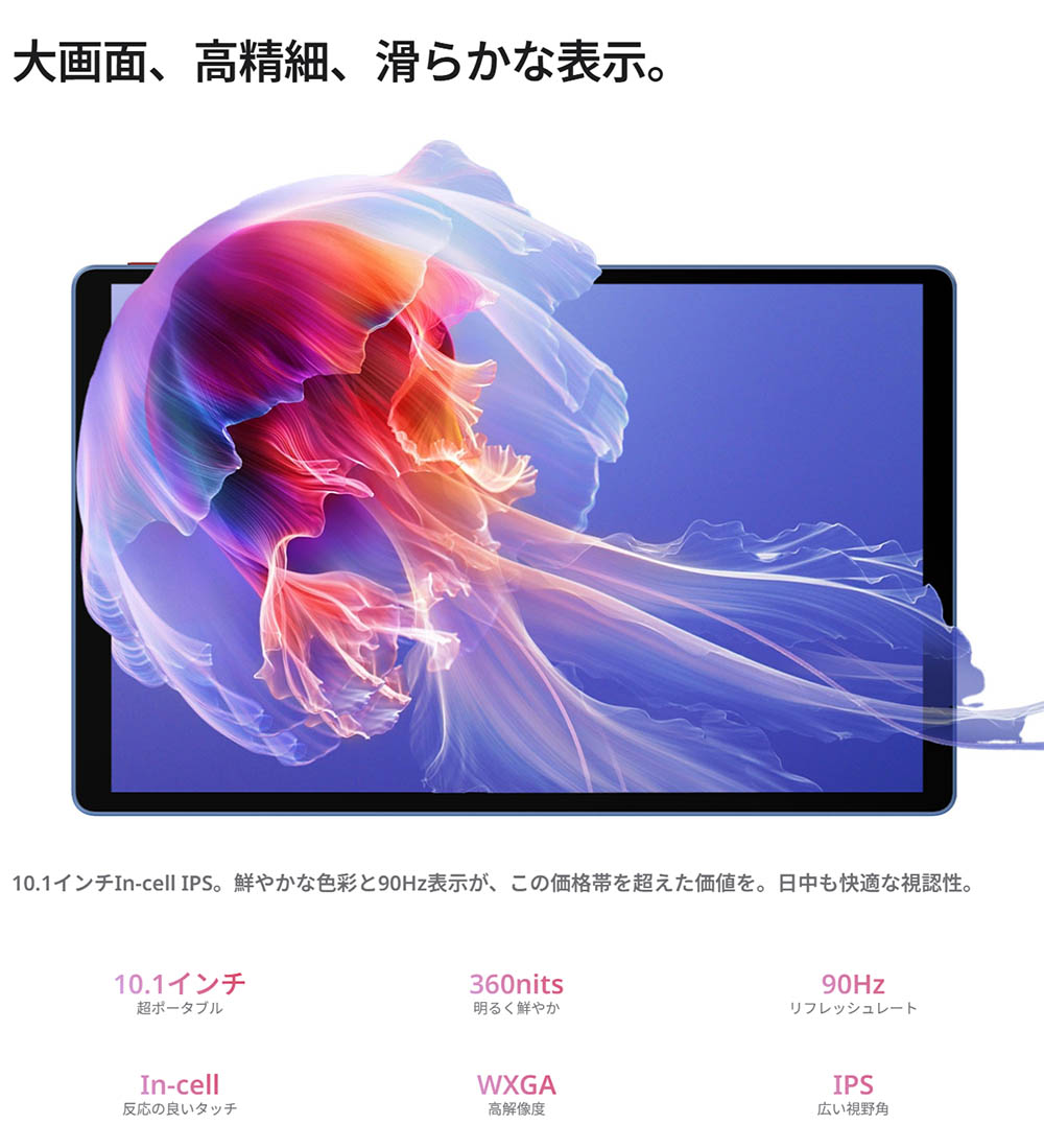 | ディスプレイ | 10.1インチ、液晶、1280×800、最大90Hz |