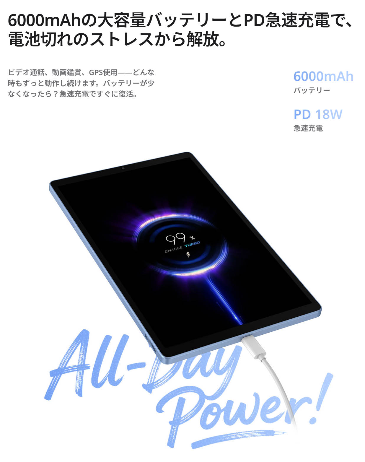 ▼バッテリー容量は6000mAhと少なめ。18W(PD)の急速充電に対応。この価格帯、この性能帯で急速充電対応は嬉しいですね!↓