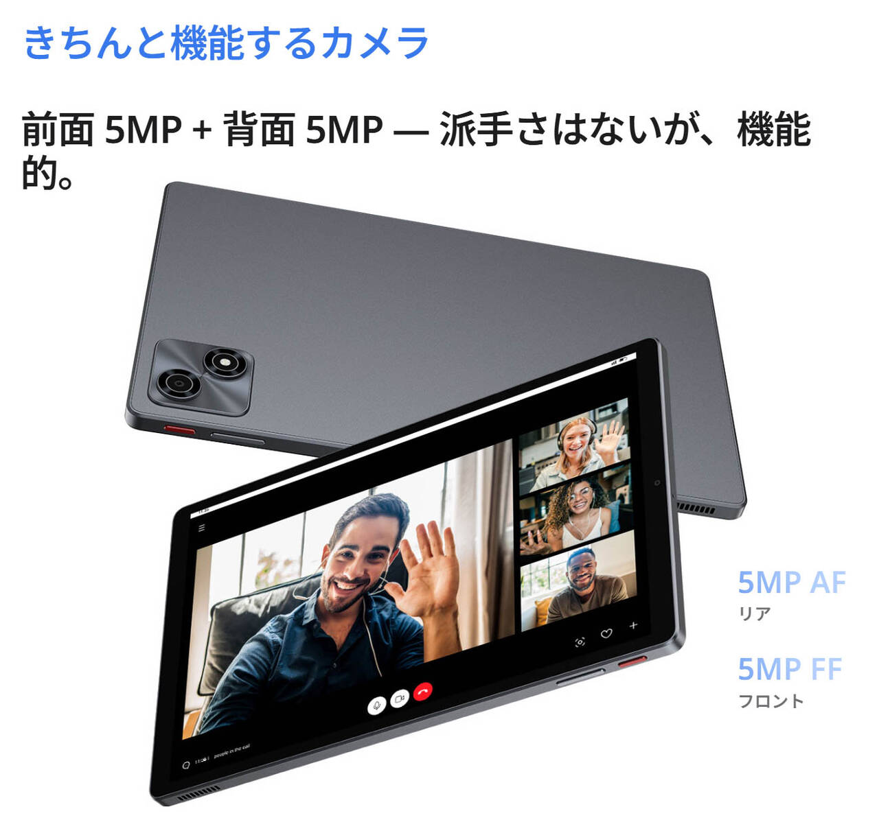 ▼リアカメラは5MP、フロントカメラは5MPです。最低限の構成なので、クオリティに期待はできません。記録用やQRコード読み取り程度に思っておくとよいでしょう。↓