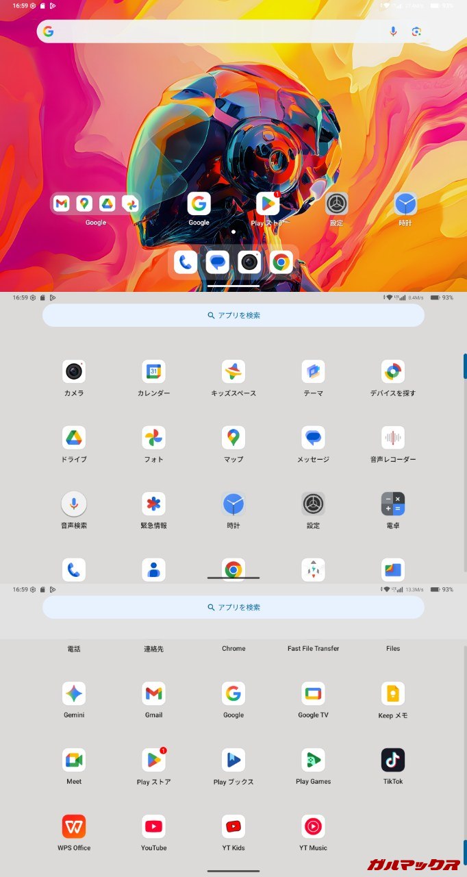ALLDOCUBE iPlay 70EのOSはAndroid 15。一応はバニラなOS(XiaomiやOPPOのように大きくカスタマイズされてないやつ)ですが、UIデザインがちょっとだけ変わってるだけの違いが出ています。