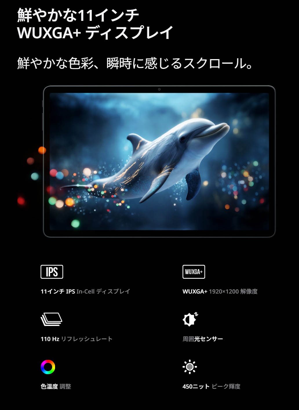 | ディスプレイ | 10.95インチ、液晶、1920×1200、最大110Hz |