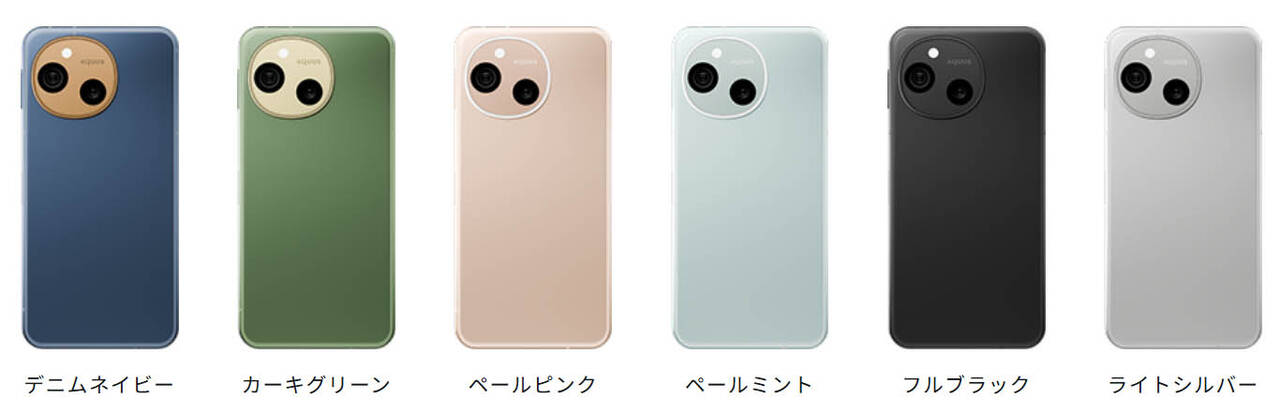 ▼カラーはデニムネイビー、カーキグリーン、ペールピンク、ペールミント、フルブラック、ライトシルバーの6色。ボディやデザインは先代のsense9と同じです。↓