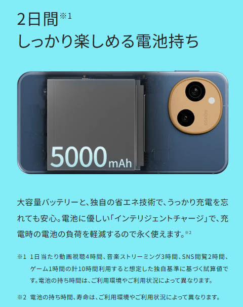 OSにはAndroid 16を搭載。最大3回のOSアップデートと、5年間のセキュリティアップデートが保証されています。長期間使うユーザーの多いターゲット層だと思うので、セキュリティアップデート期間が長めなのは嬉しいですね!