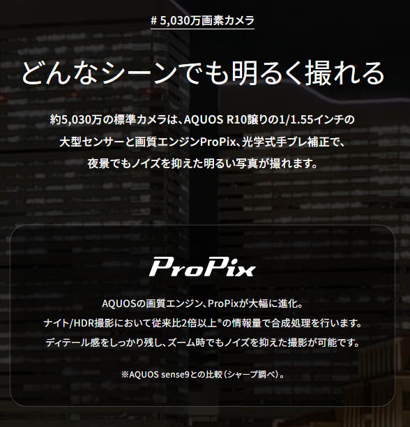 AQUOS sense10のカメラ