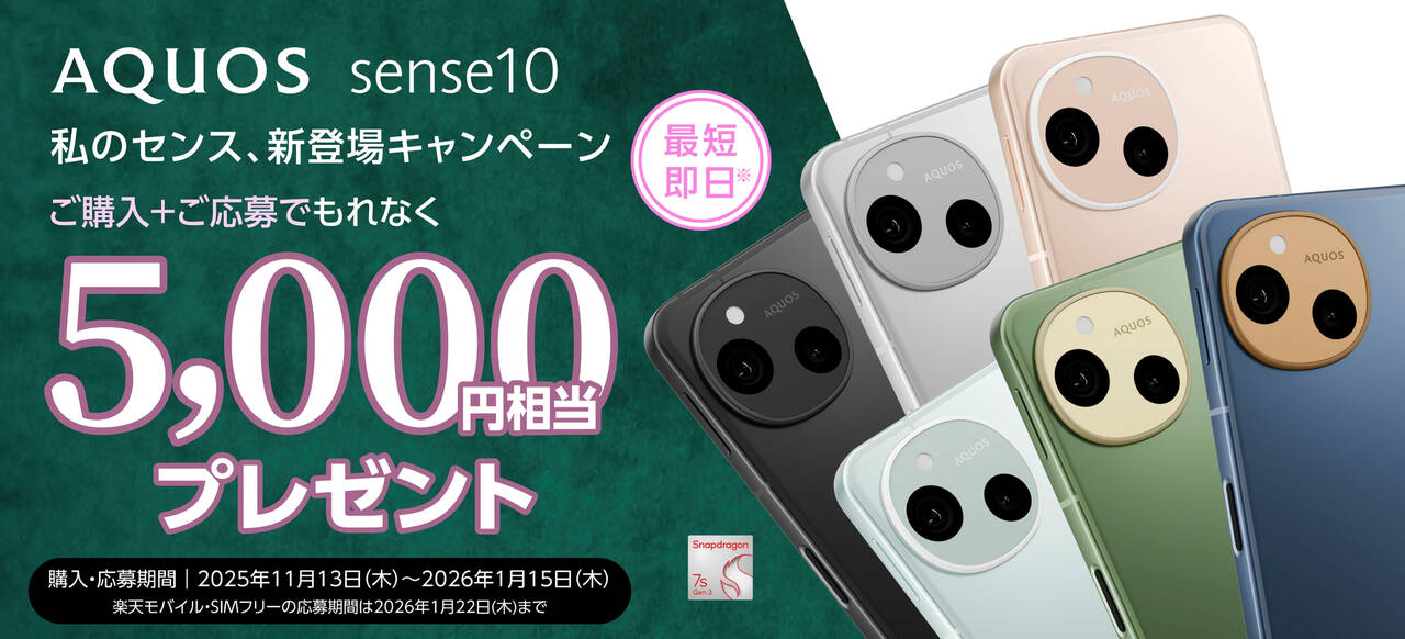 AQUOS sense10のスペックまとめ!Snapdragon 7s Gen 3搭載で軽量高耐久なスマホ!