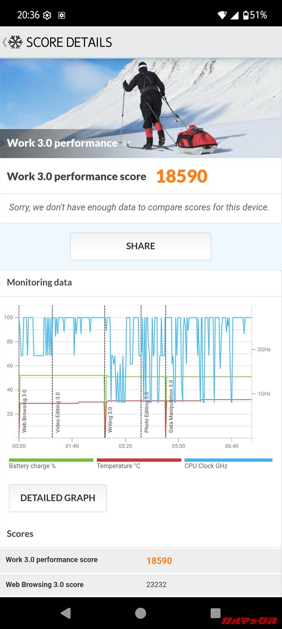 どういうわけか3DMarkのバッテリーテストと相性が悪いのか、条件を他機種と揃えて何回試しても7時間台となまじ短かった本機のバッテリーですが、容量は5,000mAhと悪くはないんですよね。