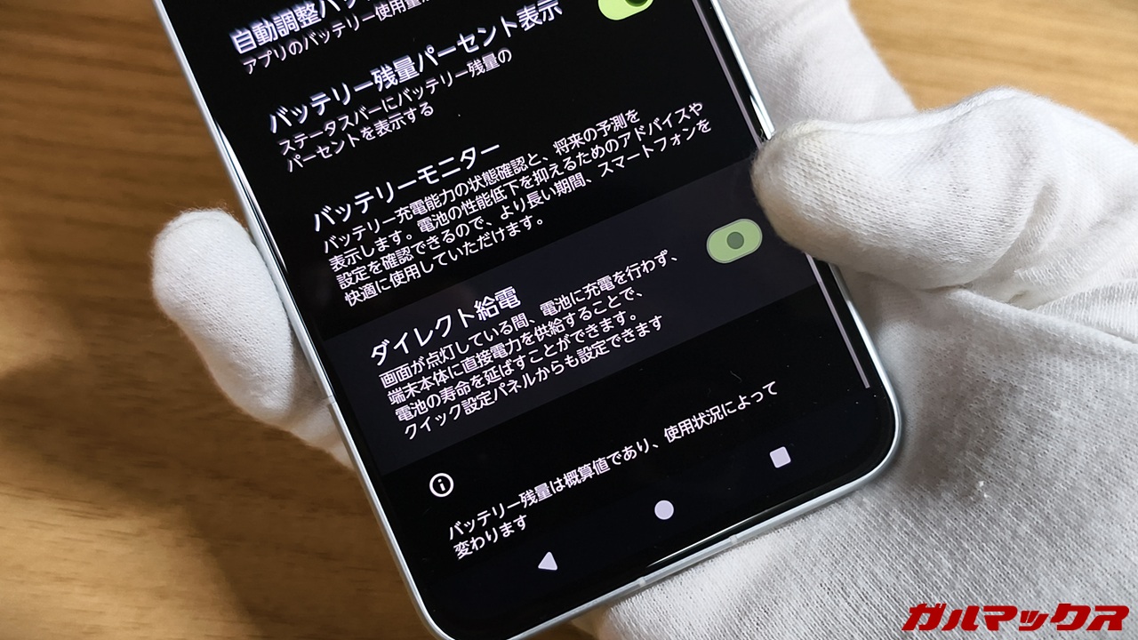 ダイレクト給電は「画面を点灯しているときのみ有効化」ということもできます。つまり繋いでゲームしてるときや動画を流し見しているときはバッテリーに負荷をかけず、使わんときだけ充電させる、なんてやり方で劣化を抑えつつ存分に使えるってワケ。