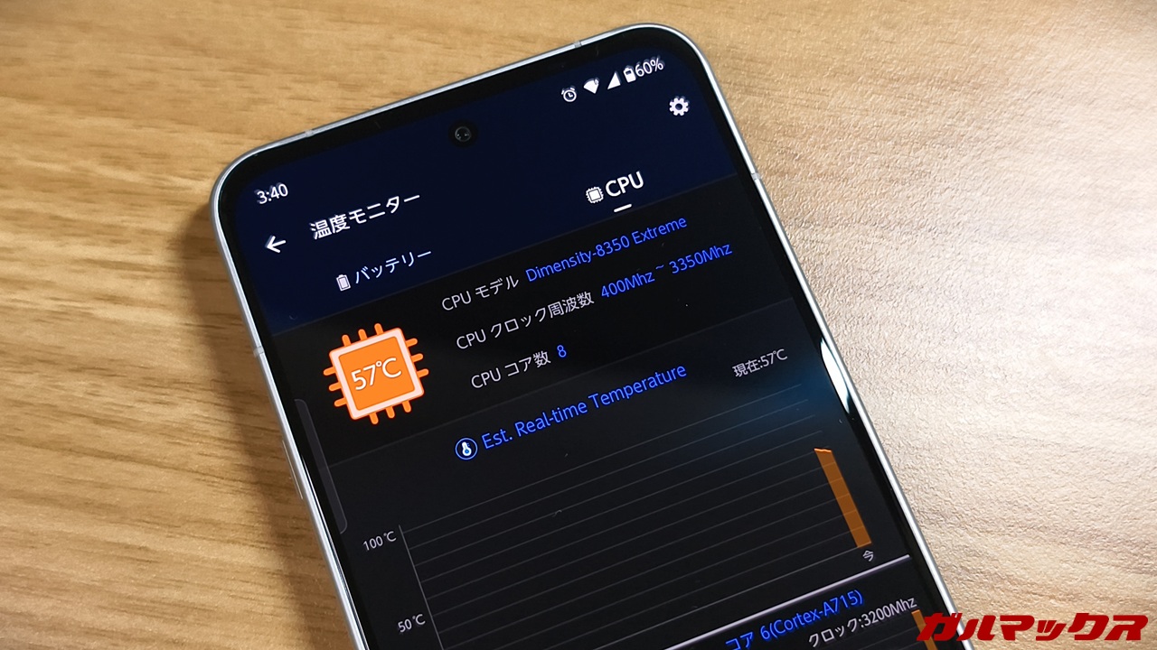 arrows AlphaのSoCはDimensity 8350 ExtremeというMediaTekのミドルハイSoCを搭載!個人的には3Dゲームをしなければハイエンドと遜色ないサクサク快適な性能帯。ゲームをほとんどしないユーザーにとっては十分すぎるレベルです。