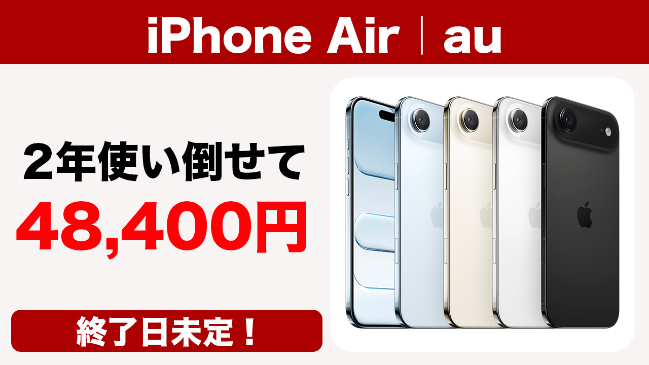 auがApple最新の超薄型スマートフォン「iPhone Air」の実質負担額を変更!2年レンタルで48,400円〜となっています。狙っていた方はチェックしてみましょう!