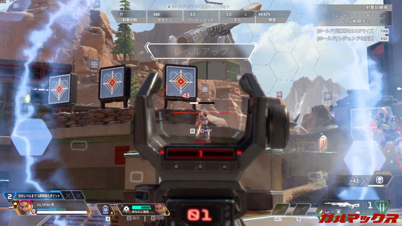 ▼APEX LEGENDSはFHD/低設定で訓練所内でテストを行いました。フレームレートは30FPSちょっとでしたが、こちらもとりあえず遊べるな…みたいな動作感でした。↓