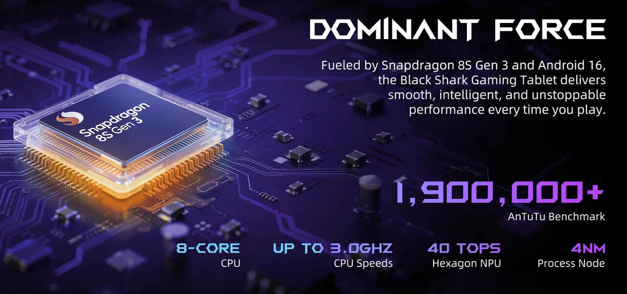 ▼Black Shark Gaming Tabletが搭載するSoCはSnapdragon 8s Gen 3。↓