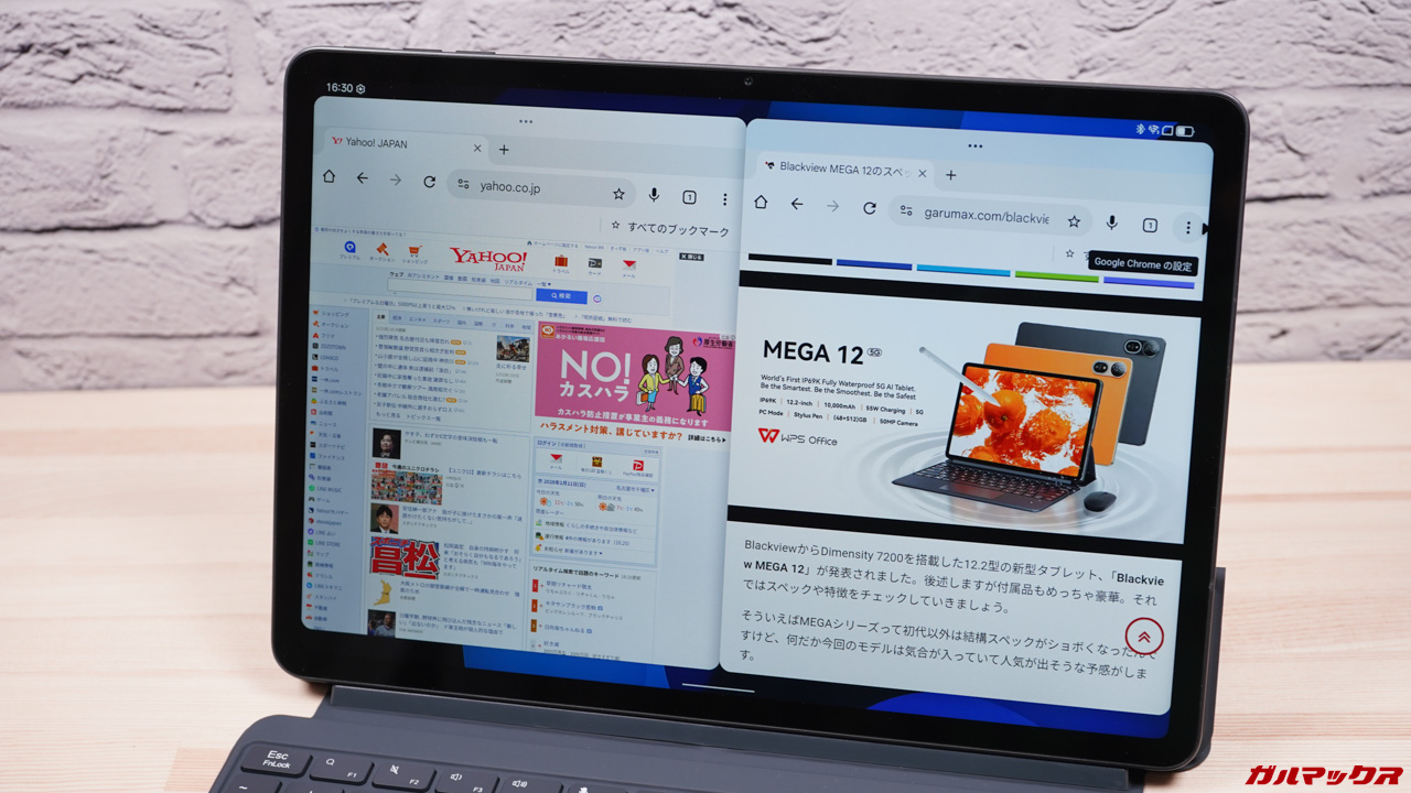 Blackview MEGA 12はChromeのタブをウィンドウ化できることを確認できたので、商品比較やWEBサイトを参照しながらWordPressで記事を書くような使い方も出来るようになって活用の幅がグッと広がっています。Good。