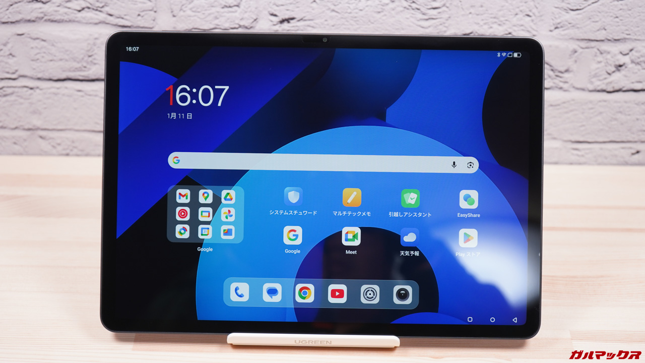 Blackviewの安価なタブレットには先端が平たいスタイラスペンが付属していしてましたが、Blackview MEGA 12は先端が細いタイプなのでメモは書きやすいです。が、感圧入力には対応していなかったのでお絵描きには向いてませんね。。