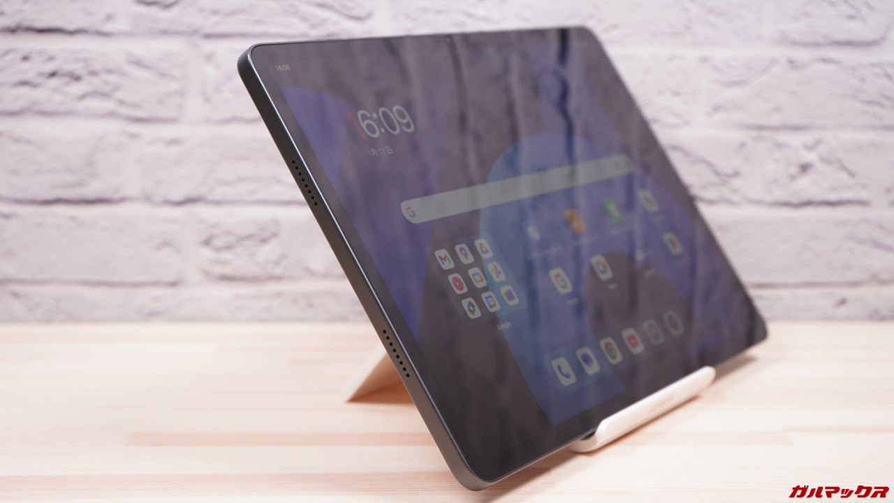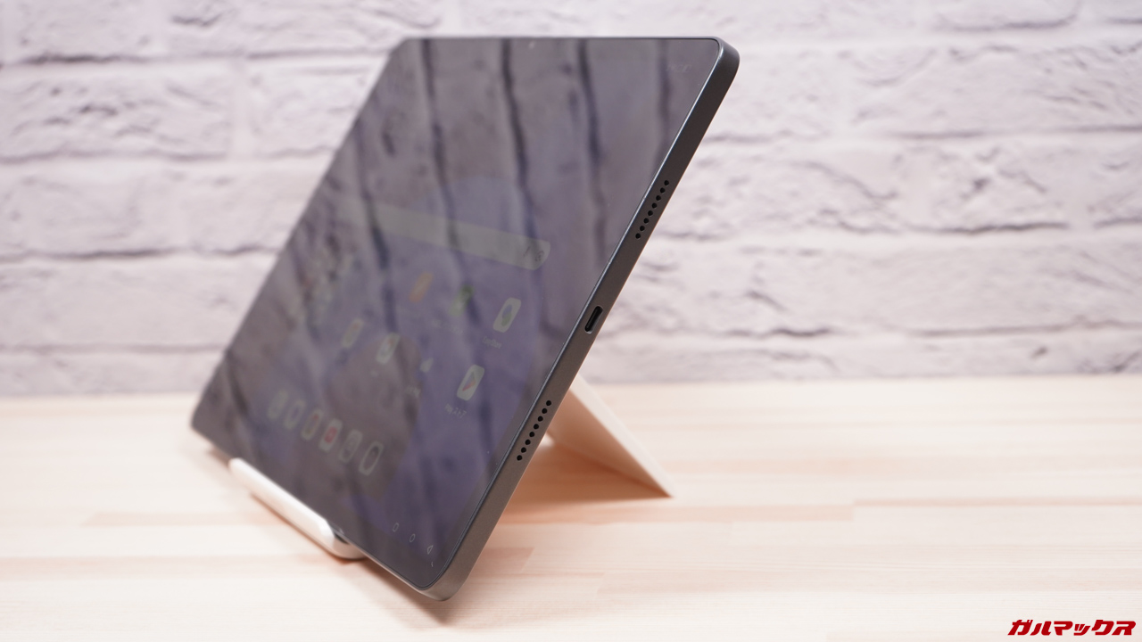 音質はやや低音が物足りないですがタブレットとしては音の広がりも悪くないし音質も良い部類なので、YouTubeだけでなく映画でもスピーカーで十分なシーンが多かったです。