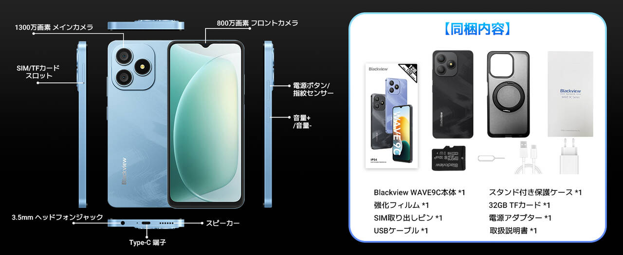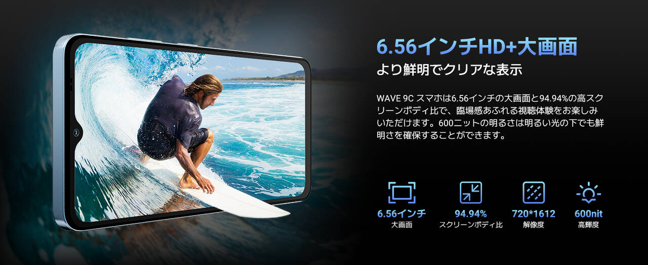 Blackview Wave9Cのスペックと特徴は以下の通り。