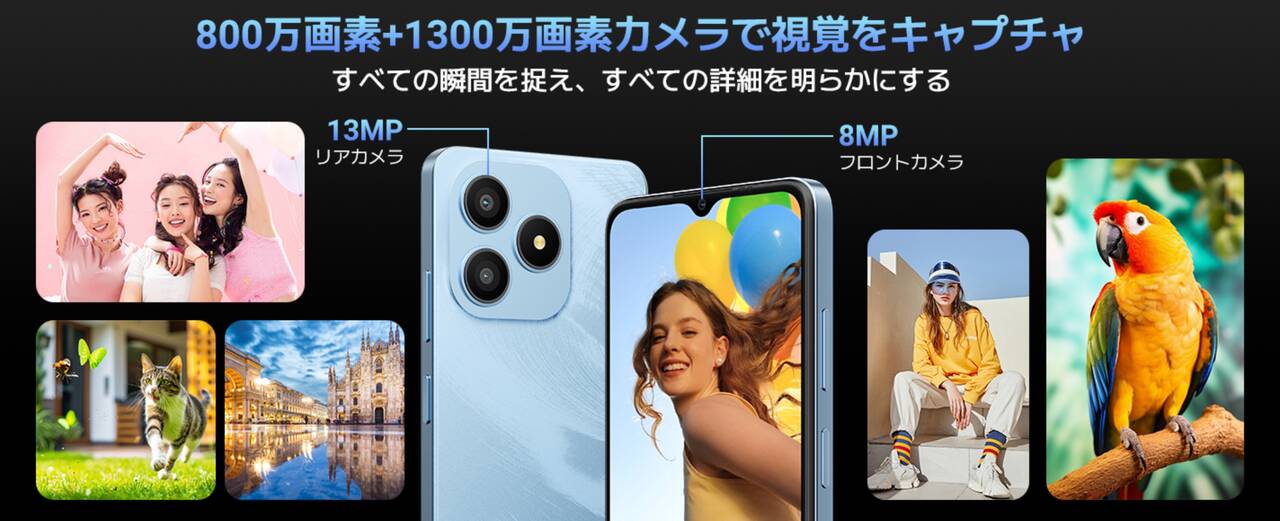 ▼搭載するSoCはUnisoc T603、メモリは4GB(拡張メモリで+8GB可)、ストレージは64GB(microSDは最大2TB対応)となっています。↓
