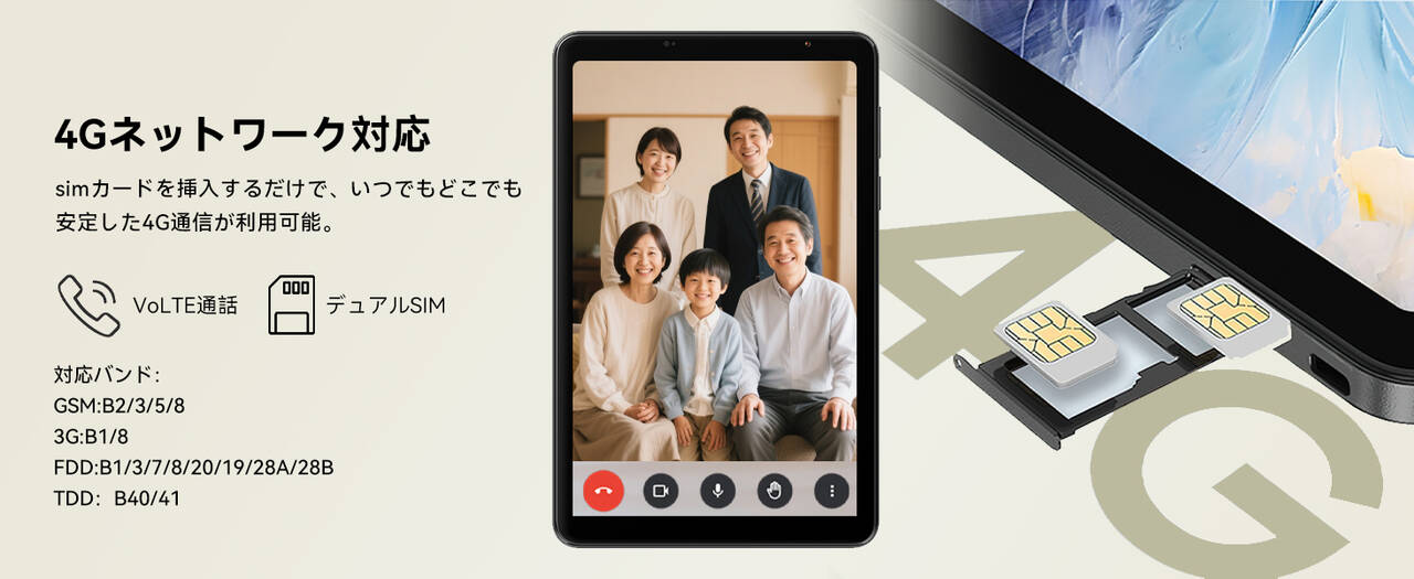▼本機はSIM対応!つまりスマホと同じもんで、SIMカードをブチ込めば通話ができ、外出先でのデータ通信もできるんです。対応バンドはドコモ系とソフバン系です。auと楽天でも使えなくはなさそうだけど、使える場所は減る可能性大です(体験談)。↓