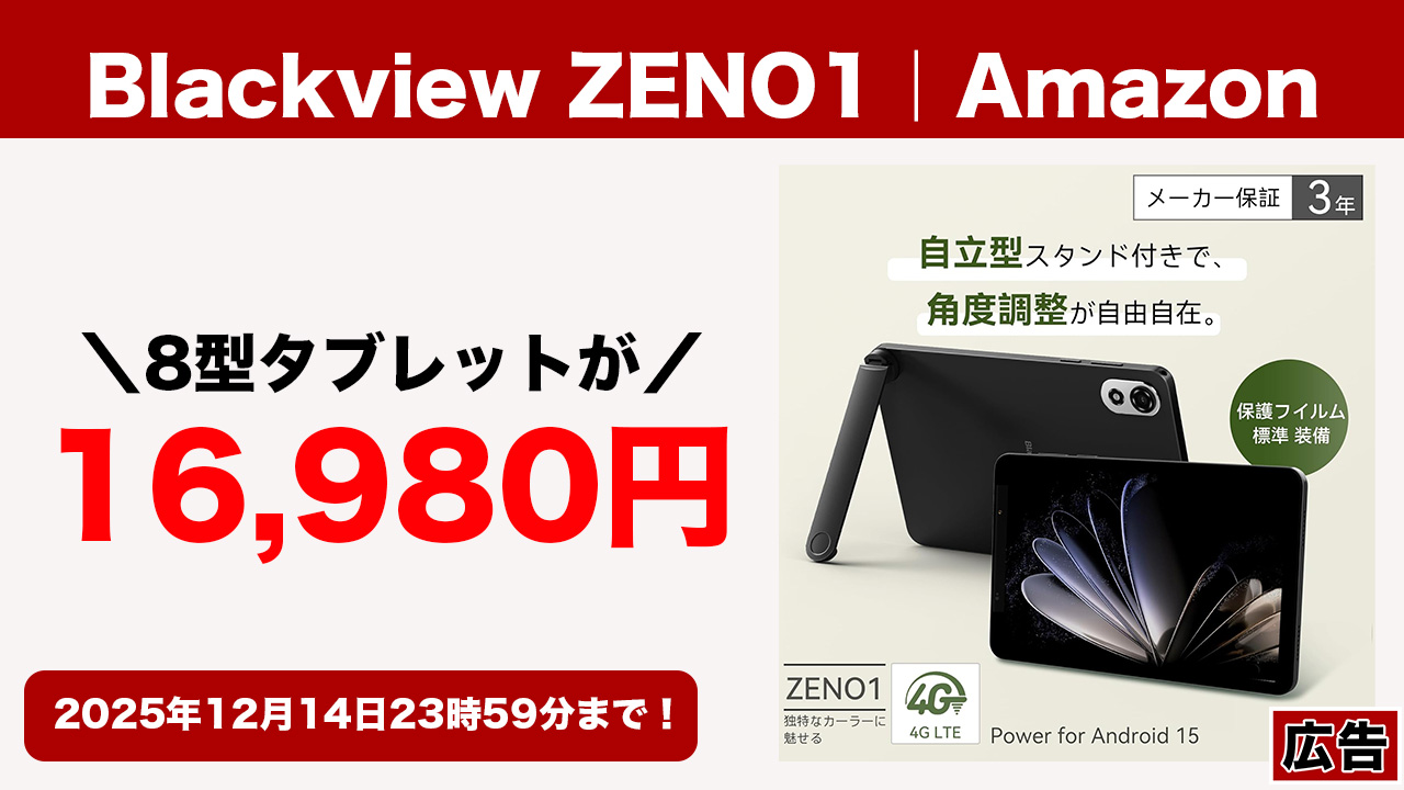 8型タブレットが16,980円!SIMも対応のBlackview ZENO1がAmazonで期間限定割引!
