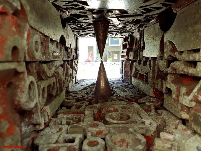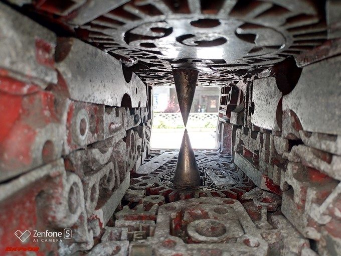 少し意地悪な検証です。オブジェクトの真ん中の突起にピントを合わせられるか試してみます。この様なシチュエーションでは手前にピントを合わせて中央がボケてしまったり、奥にピントが合って逆ボケになることも有るので結果が楽しみです。