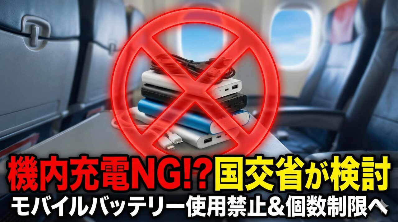 今回のニュースの核心は、国交省が有識者会議で「機内でのモバイルバッテリー使用禁止」や「個数制限の具体化」を議論しているようです。