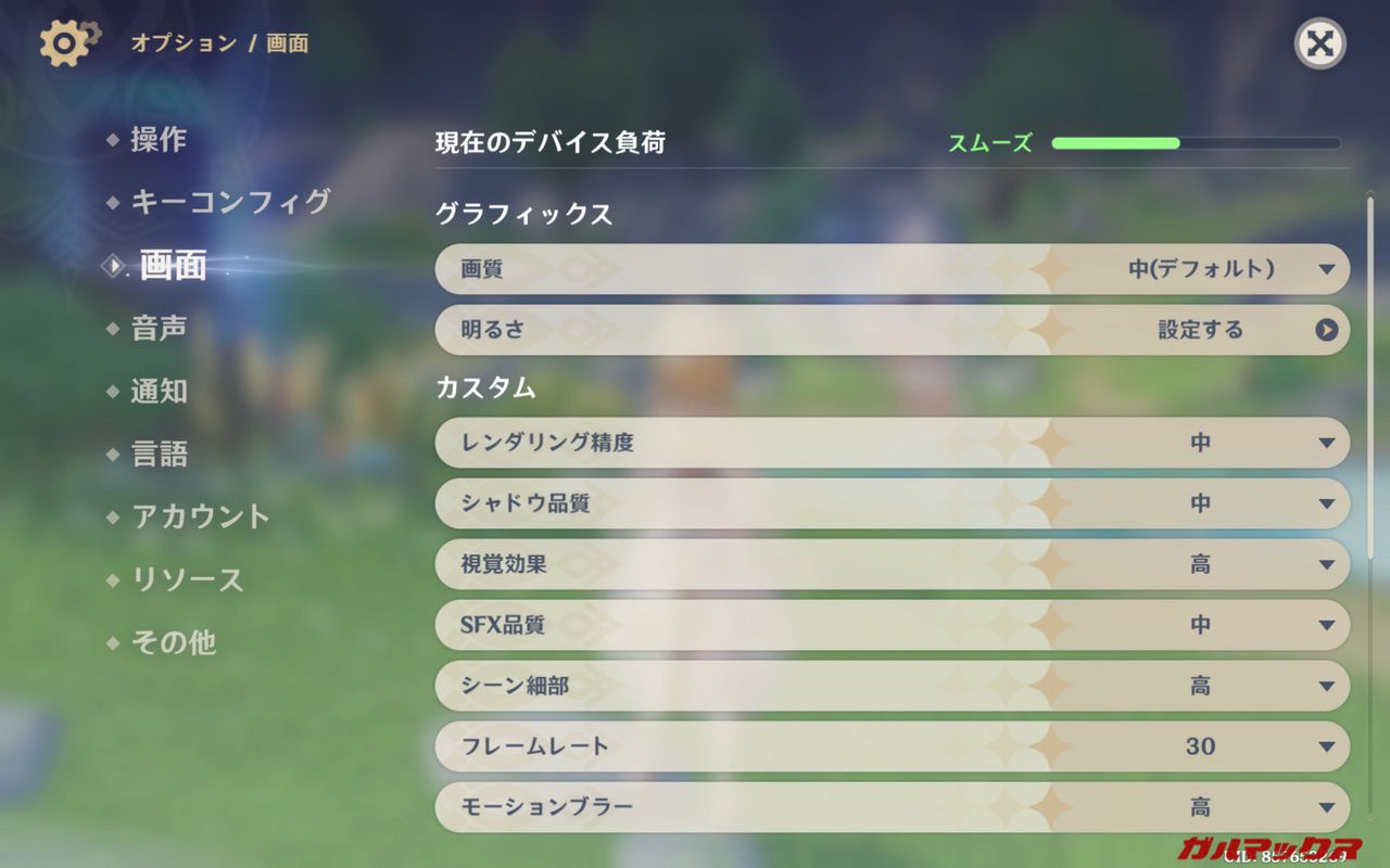 ▼グラフィックのデフォルト設定は「中」となっていました。↓