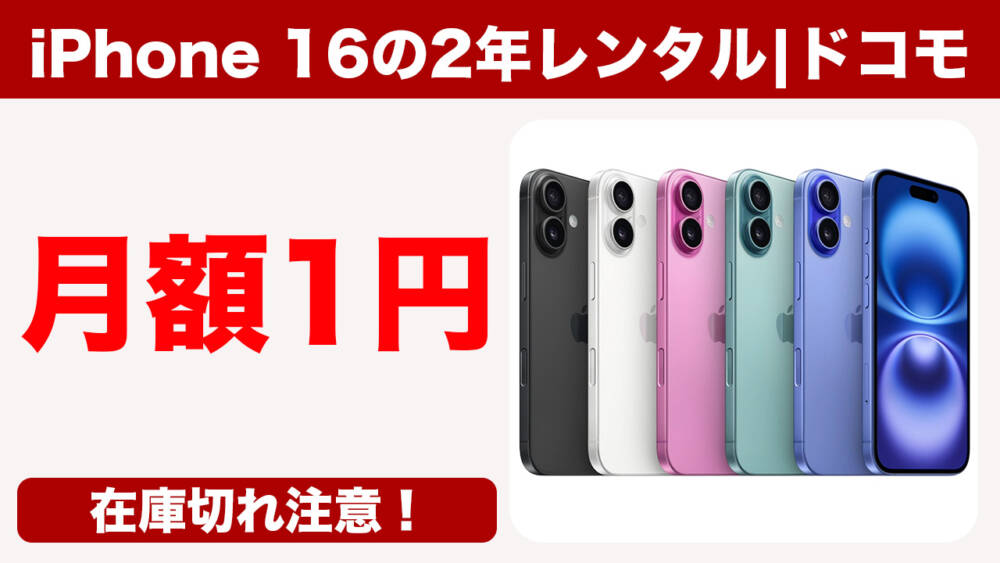ドコモオンラインショップでiPhone 16の2年レンタルが端末代1円!128GBのみのMNP特価、ahamoでも購入可!