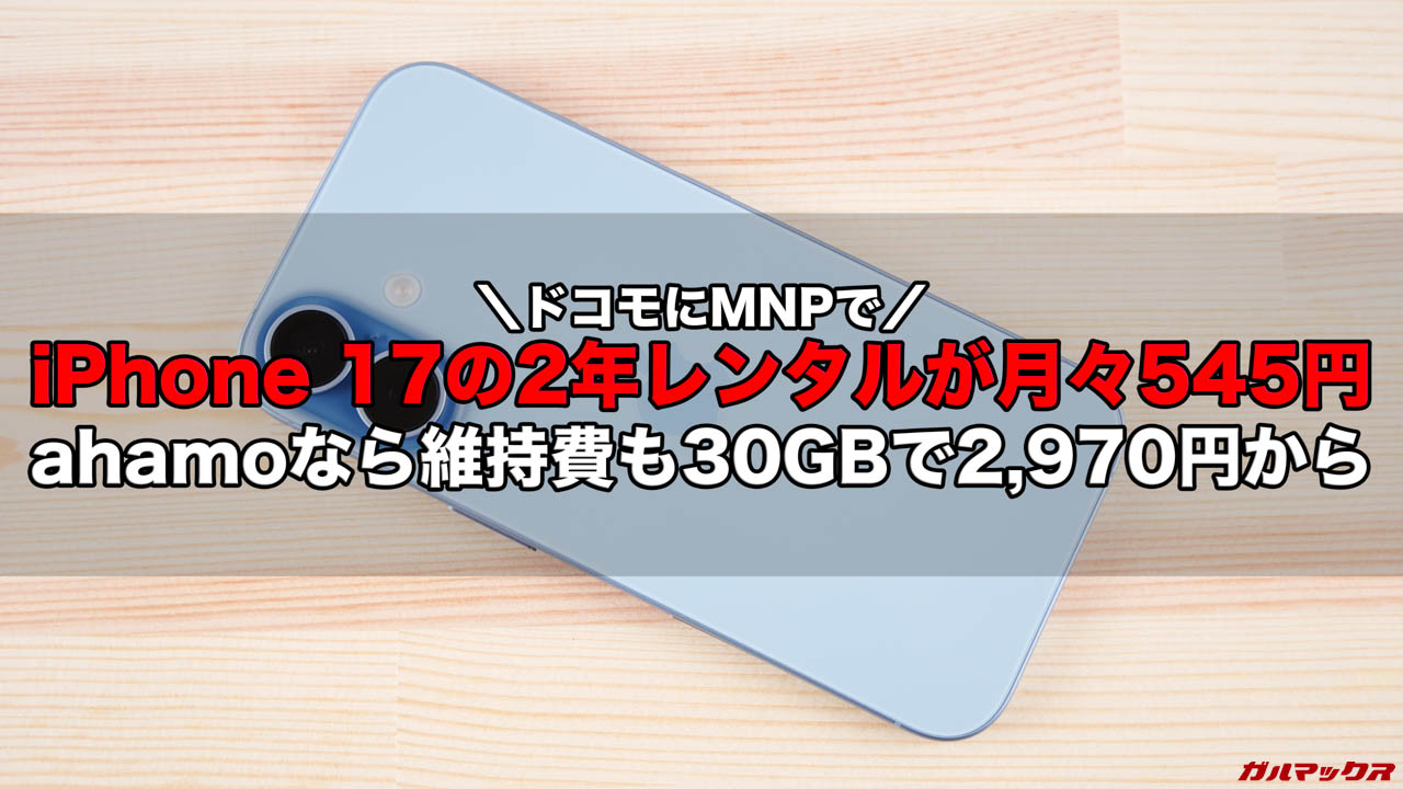 MNPでドコモiPhone 17の2年レンタルが月の端末代545円!ahamoなら維持費も30GBで2,970円から