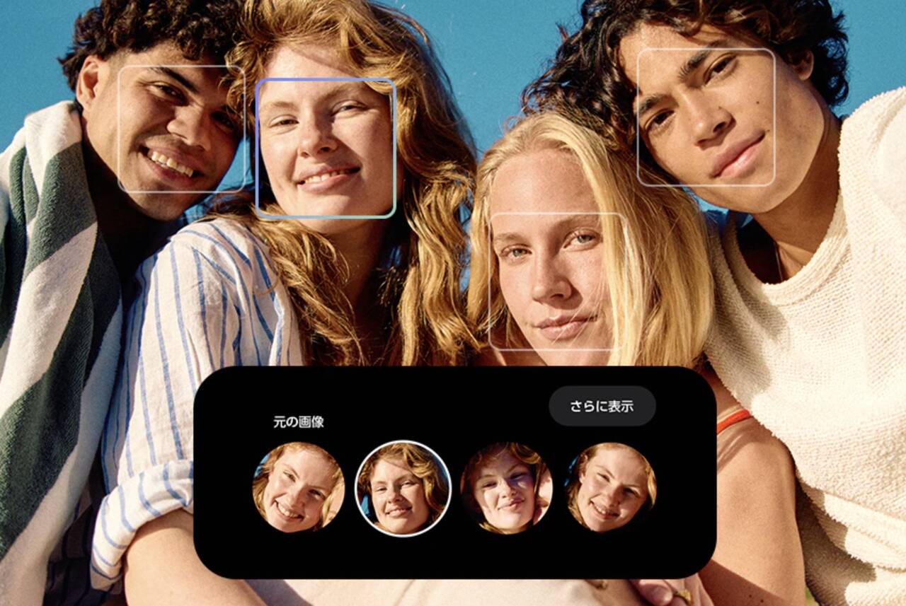 ▼集合写真でベストな笑顔に補正したりなどなど、これらの機能もしっかり使えるようになっていますよ!↓
