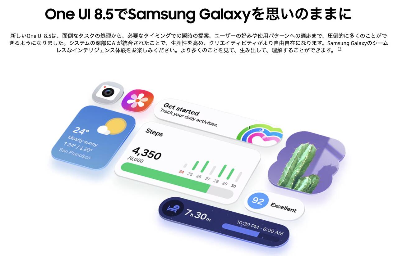 Galaxy S26シリーズと同じくローンチ時点からOne UI 8.5を搭載しているのがめちゃくちゃ良いですね!