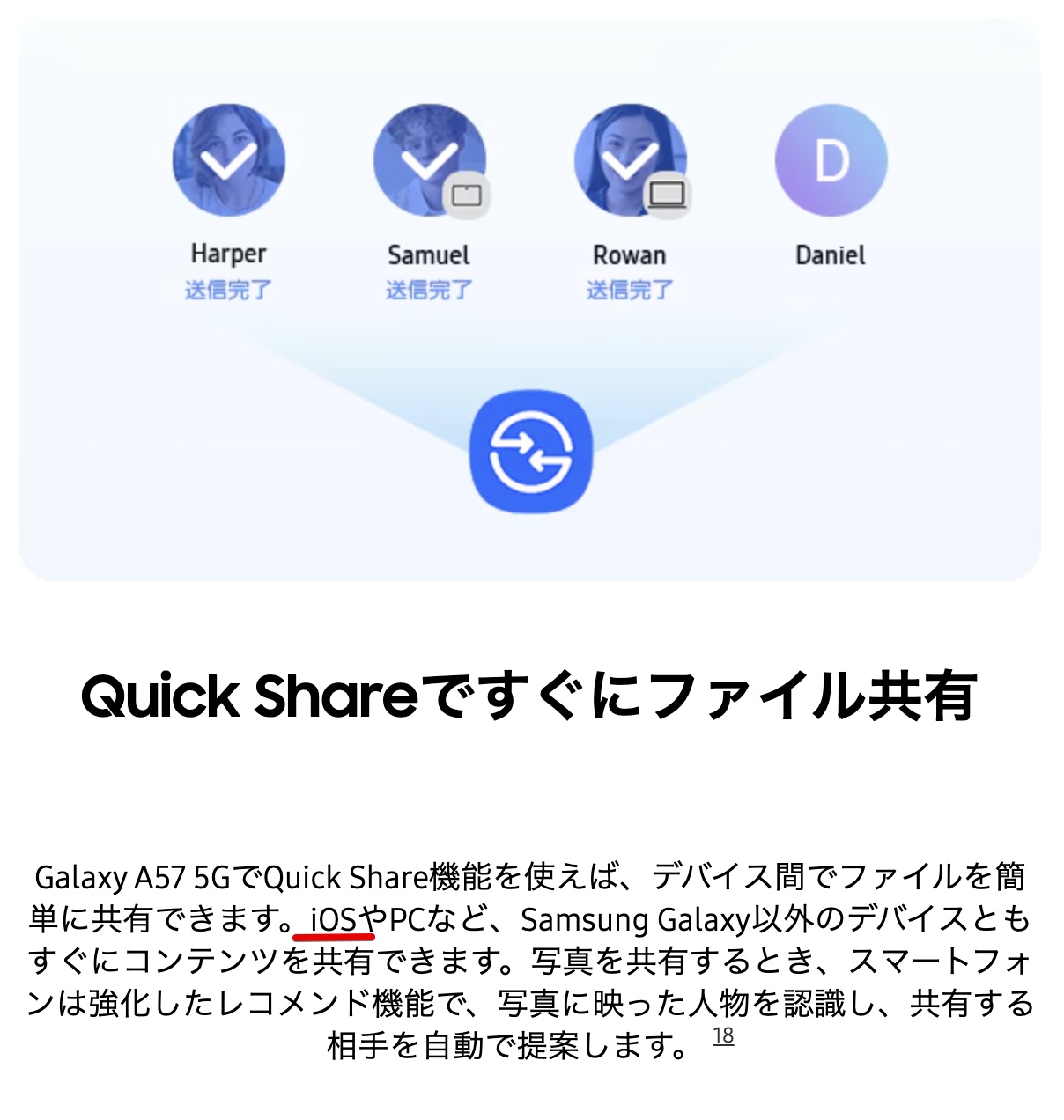 ▼というのも、One UI 8.5はQuick ShareでiPhoneにAirDropできるんですよ。↓