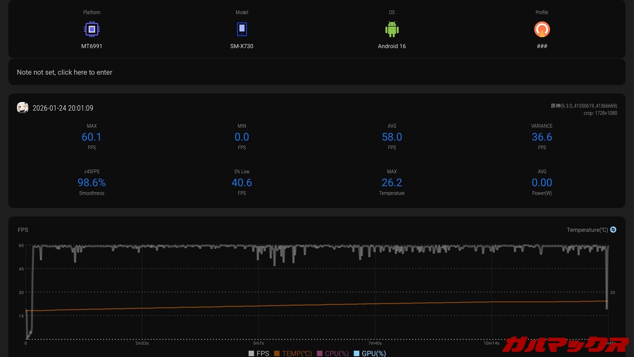 ギャラタブ、ひいては現行モデルにおいて最強級の性能を誇るDimensity 9400+を搭載する本機。言うまでもなく快適。それ以上はないです。