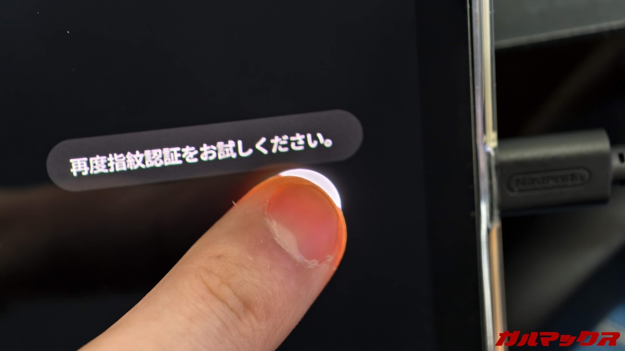 ▼具体的には、指をあててから1秒は確実にかかります。しかも認証率も低い。5回に1回は読み込まれず失敗する。↓