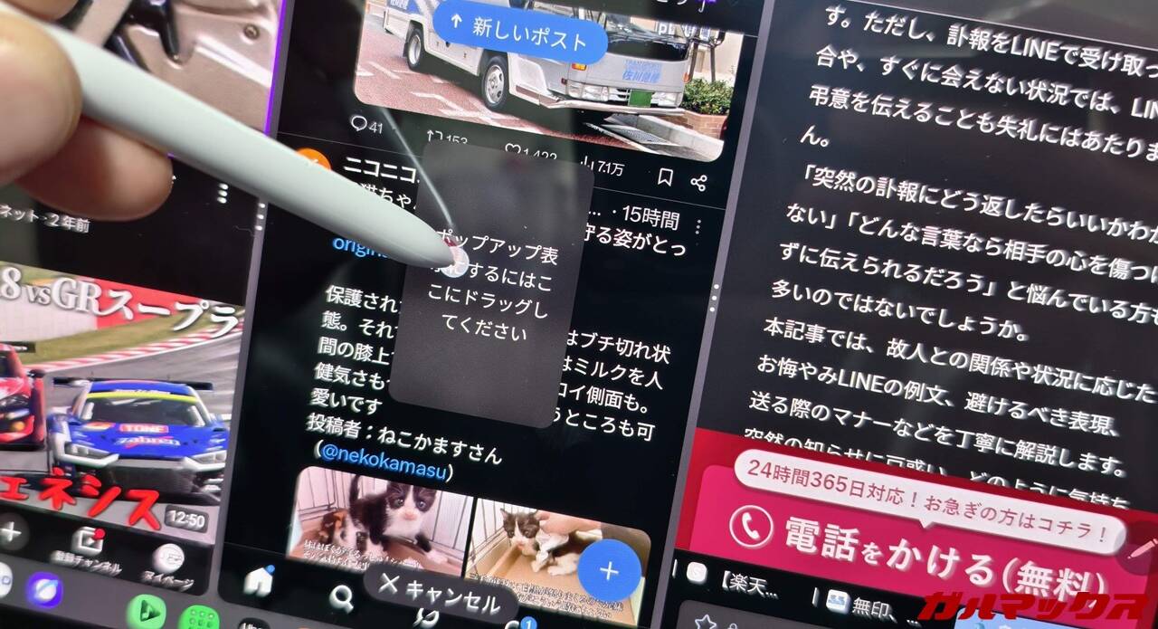 ▼具体的には「下部のタスクバーからアプリをドラッグして分割・ポップアップ起動するとき」が一番恩恵あったなって思えます。↓