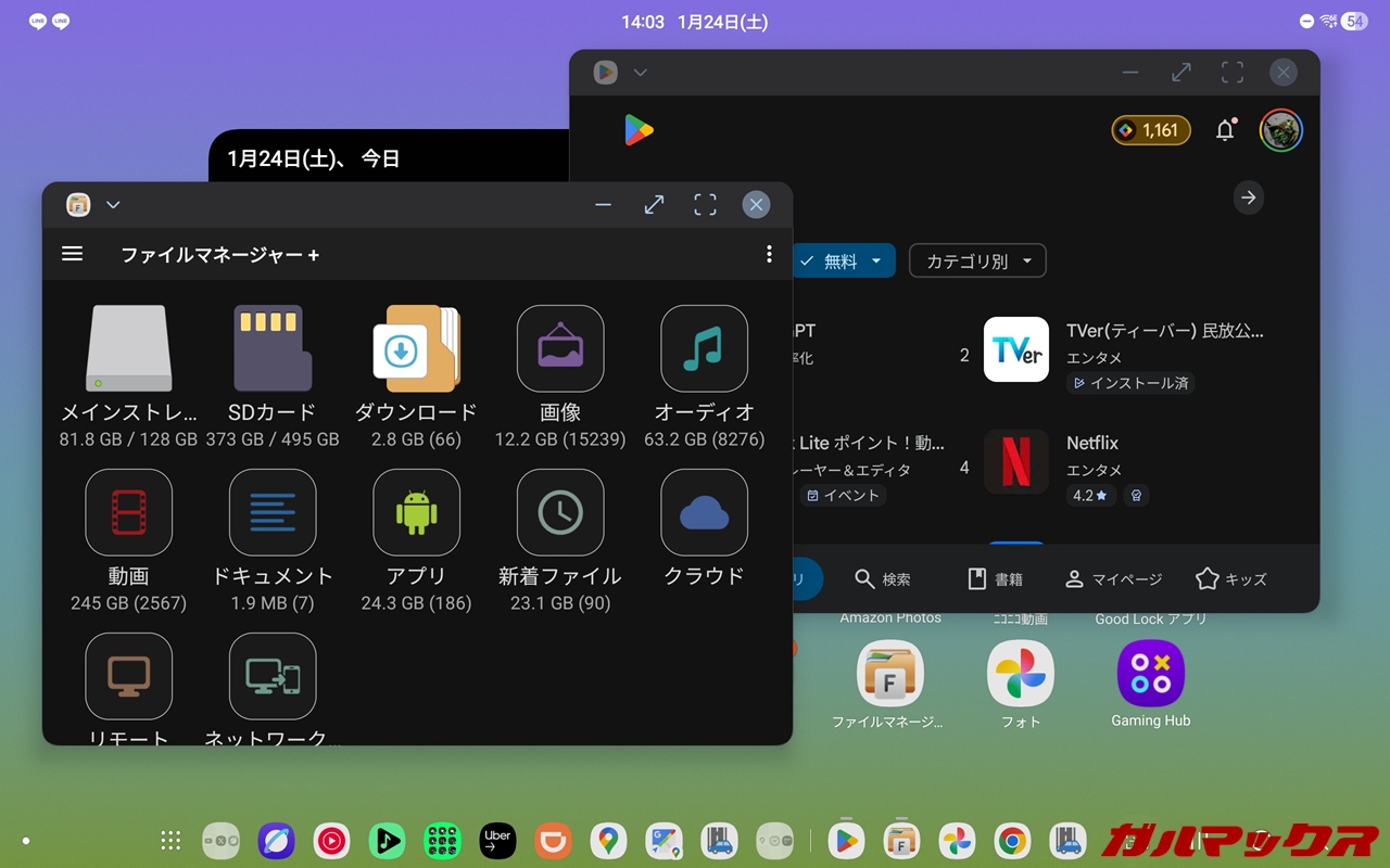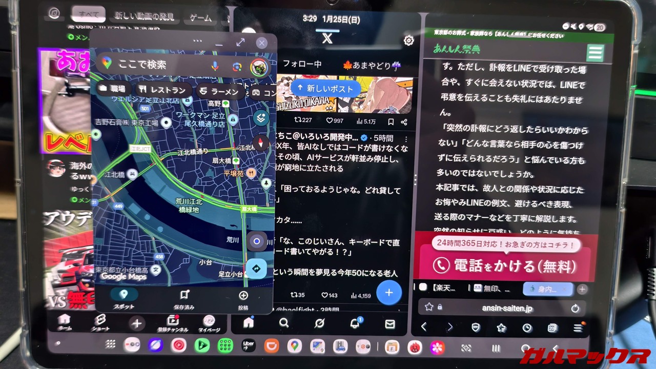 ▼これはTab S10 FE+でもできてたんだけど、その状態に加えてポップアップ表示で計4つのアプリを同時に起動させてても快適。まぁ流石に本体に少し熱は帯びますが、ここでもうハイエンド買ってよかったと思えるワケ。↓