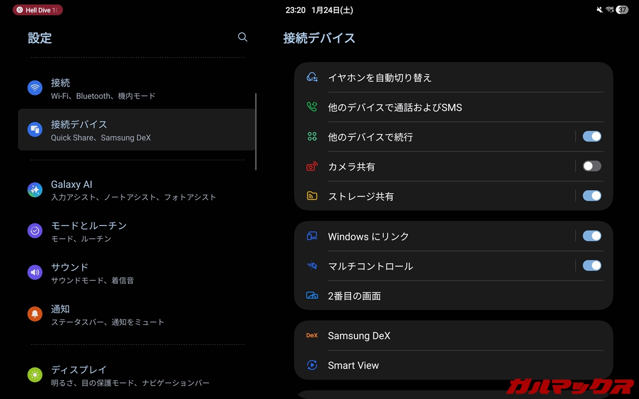 ▼One UIといえば独自機能の充実っぷり。この要素抜きにGalaxyデバイスは語れません。Galaxyの他デバイスとの連携もバッチリで、クリップボード共有や通話の転送も可能。めっちゃ便利。↓